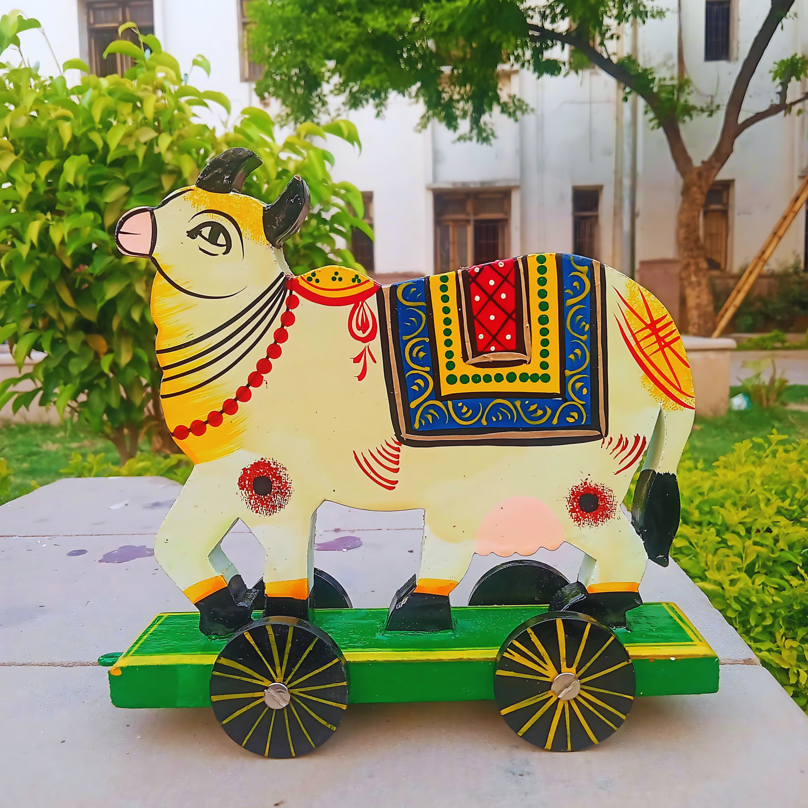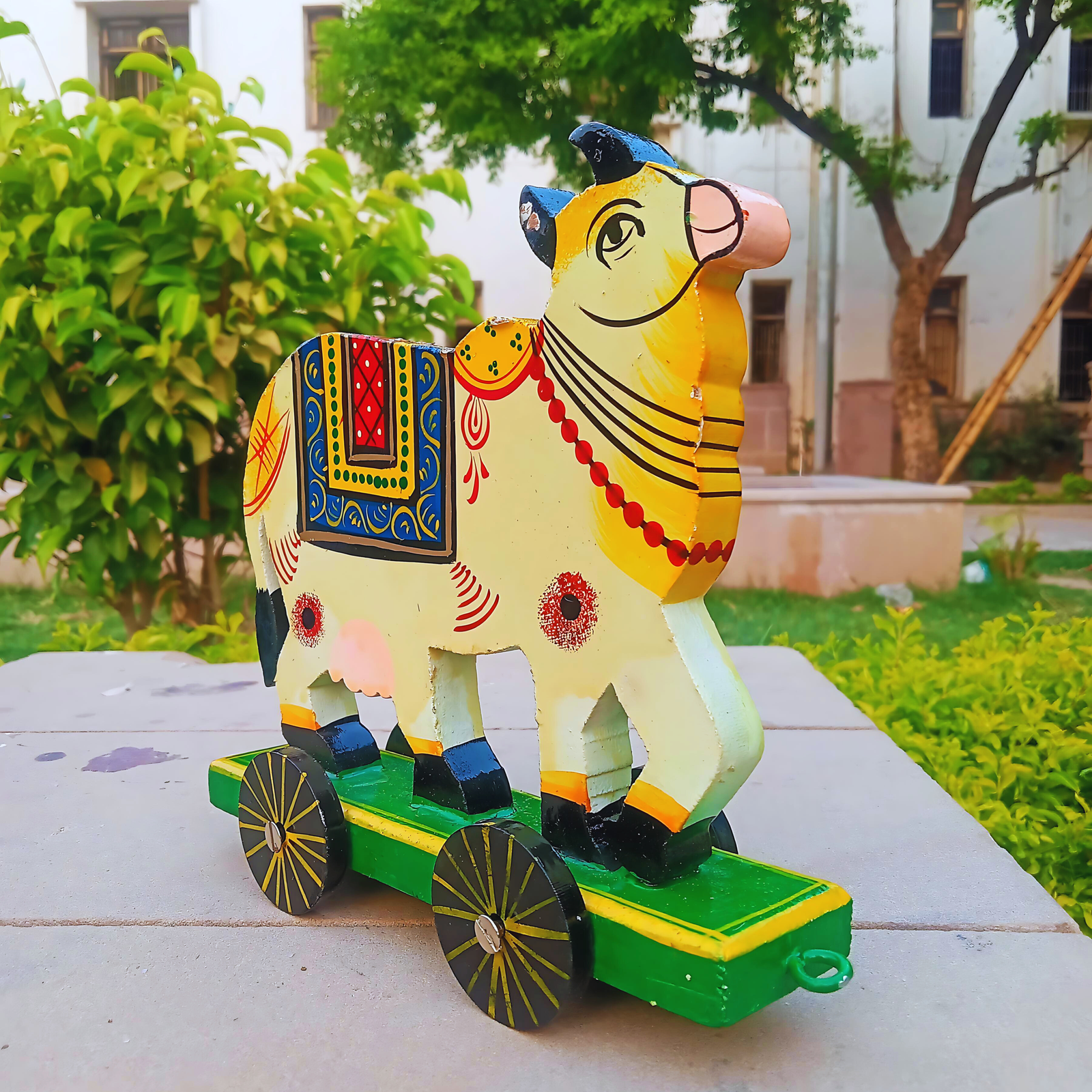 Keywords: Rangyatra wooden cow, wooden cow hand-painted, wooden pull along cow. wooden hand-painted cow,
