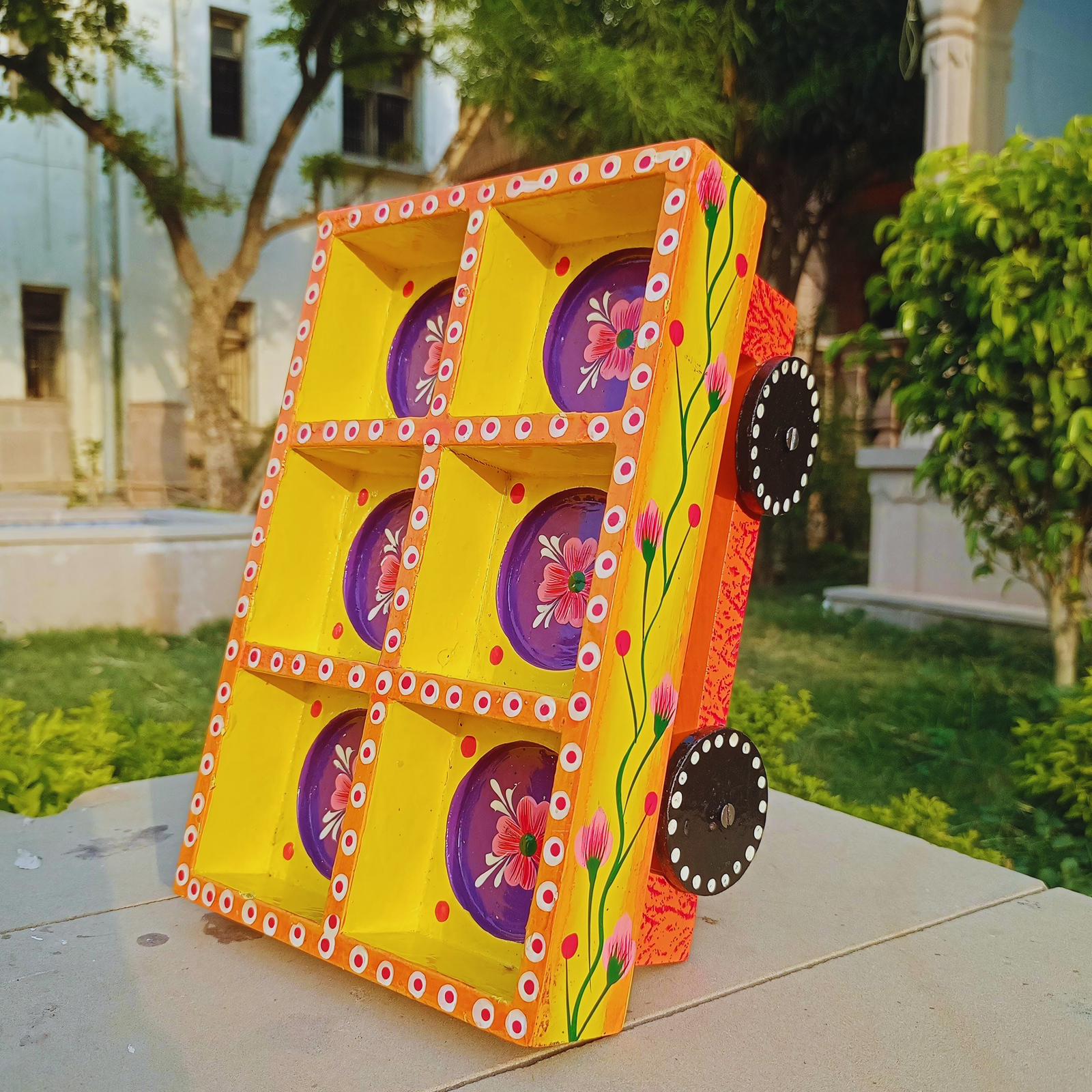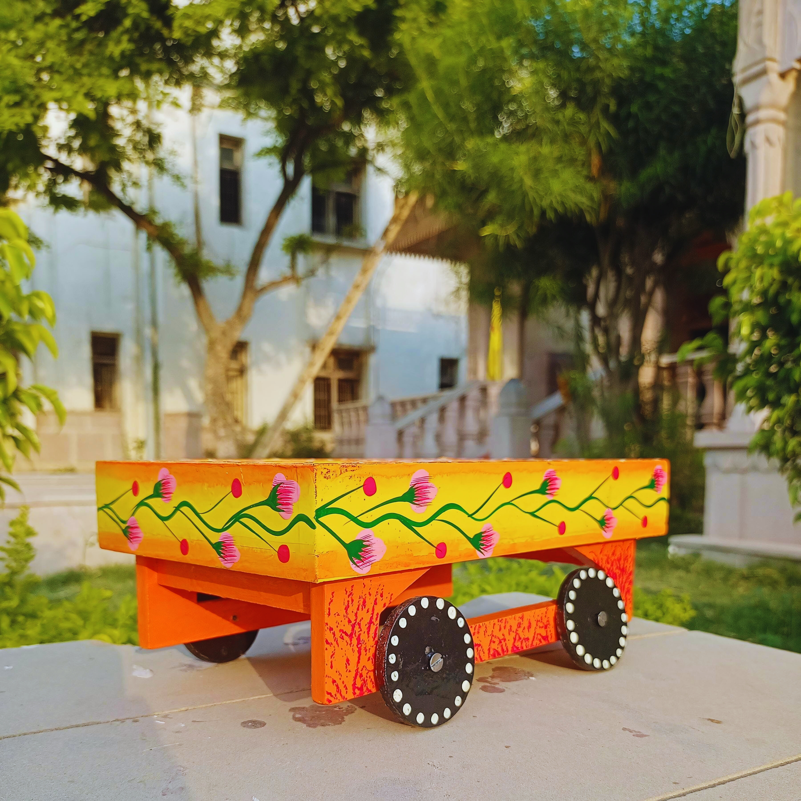 The Rangyatra Wooden Serving Thela is a unique and stylish serving tray designed like a traditional street cart. Made from high-quality wood, this beautifully crafted thela is perfect for serving snacks or drinks, adding a rustic and charming touch to your gatherings. Ideal for home decor and entertaining guests. Wooden Serving Thela